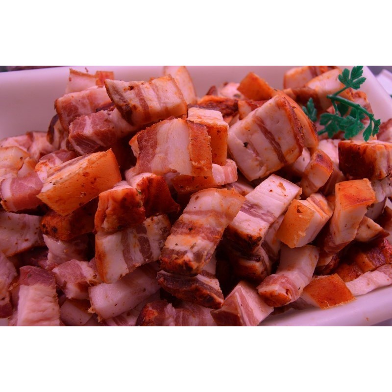 Torreznos: panceta de cerdo adobada y cortada en dados , se cocinan fritos.