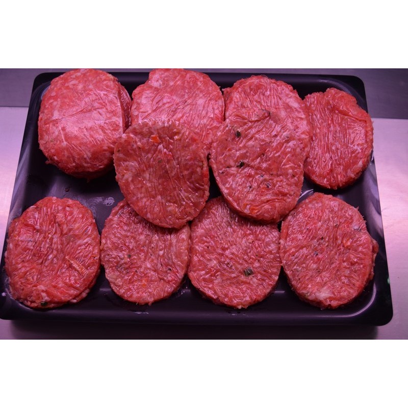 Hamburguesas de pollo con verduras: carne de pollo y verduras se cocinan fritas a la plancha o en barbacoa.